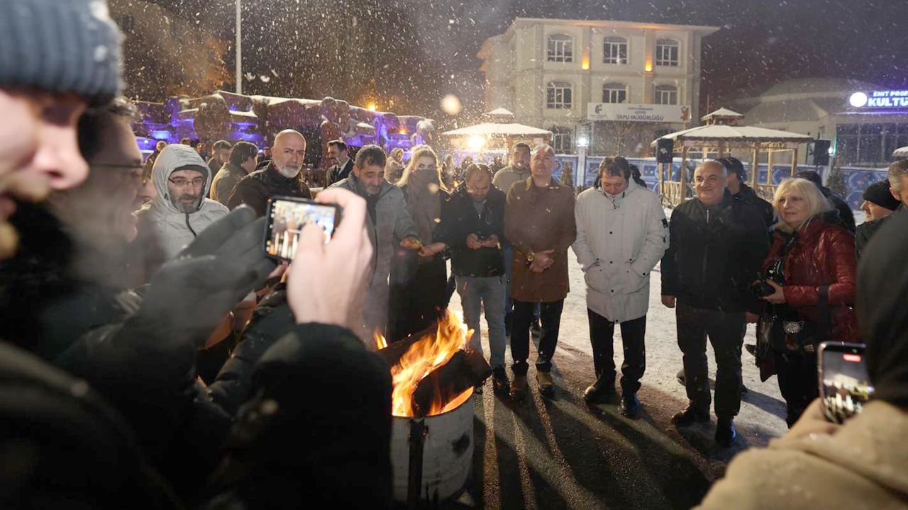 Aziziye Belediyesi’nce organize edilen programda bir araya gelen medya mensupları, lapa lapa yağan karın keyfini ateş başında sahlep içerek çıkardı.