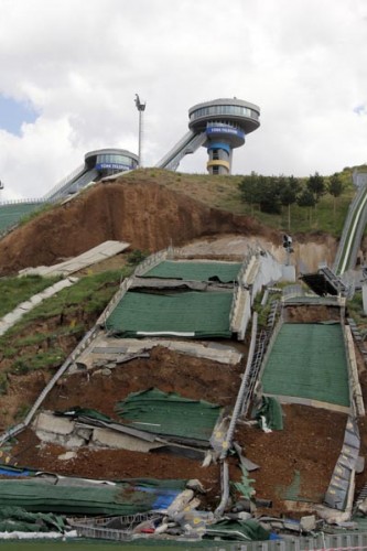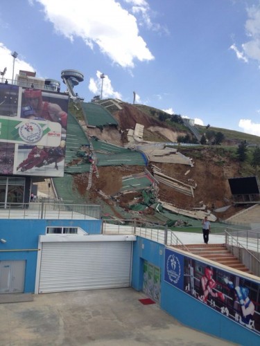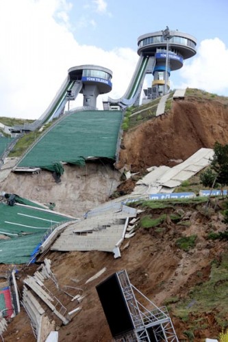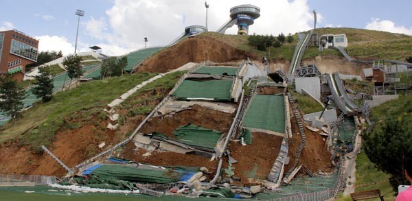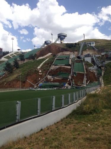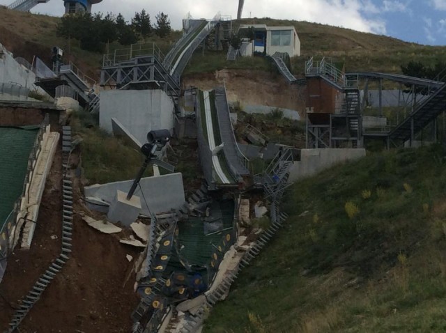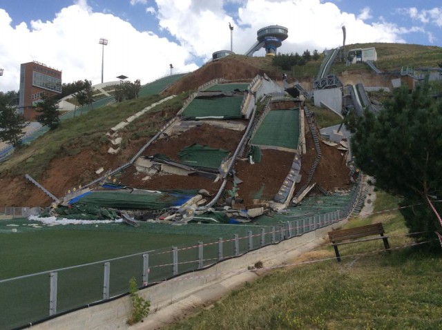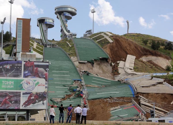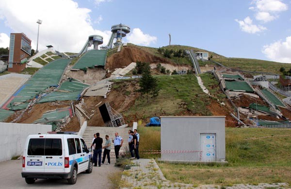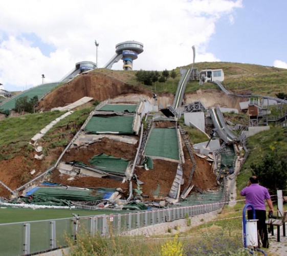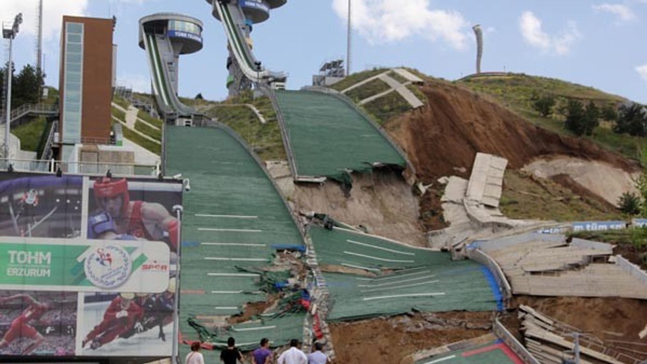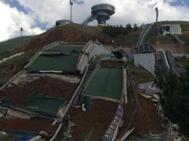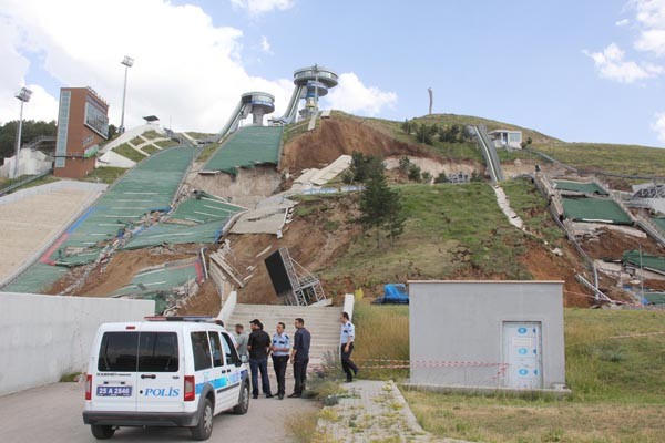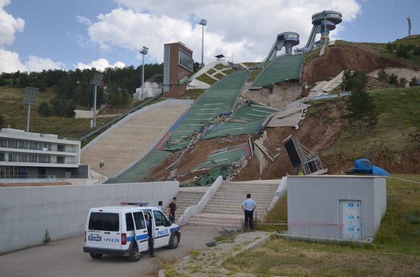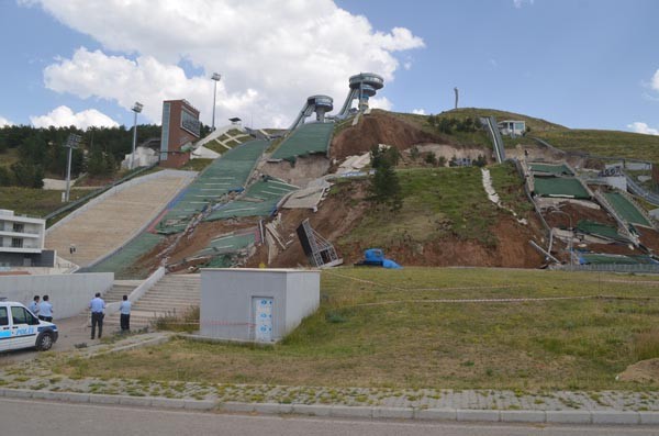 Erzurum’da milyonlarca liraya mal olan atlama kulelerinin pistleri yıkıldı.