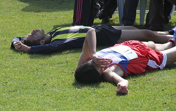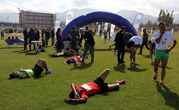 Erzurum’da düzenlenen Gençler ve Büyükler Kulüpler Kros Ligi yarışlarında finiş çizgisine ulaşan sporcular, yorgunluktan baygınlık geçirerek kendilerini çimlerin üzerine bıraktı.