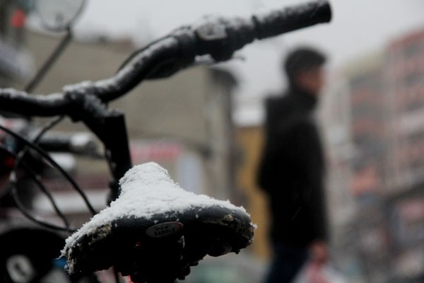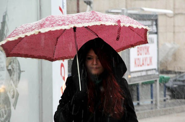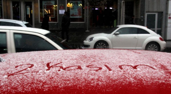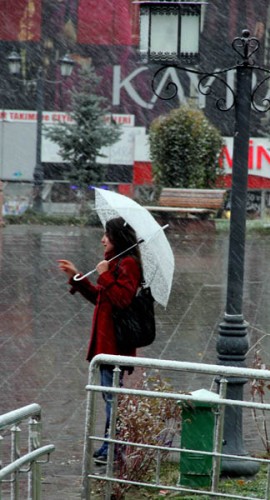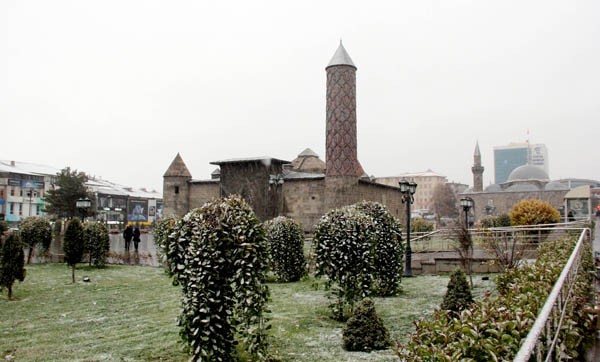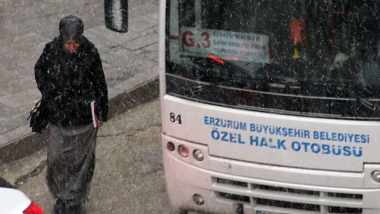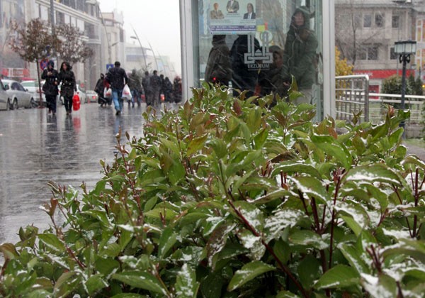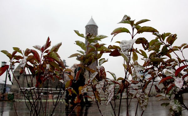 Erzurum'da, kar yağışı başlarken hava sıcaklığı hissedilir derecede düştü.
