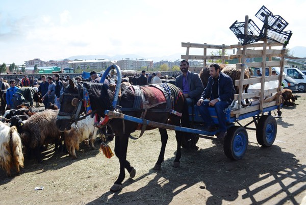 Kurban Bayramına 2 gün kala hayvan pazarında hareketlilik başlarken, yükleme yapılırken kaçan bazı kurbanlıklar zaman zaman sahiplerine zor anlar yaşattı. Nakliye ücretlerine tepki gösteren bazı vatandaşlar ise aldıkları koyunları at arabasına yükleyerek götürdü.