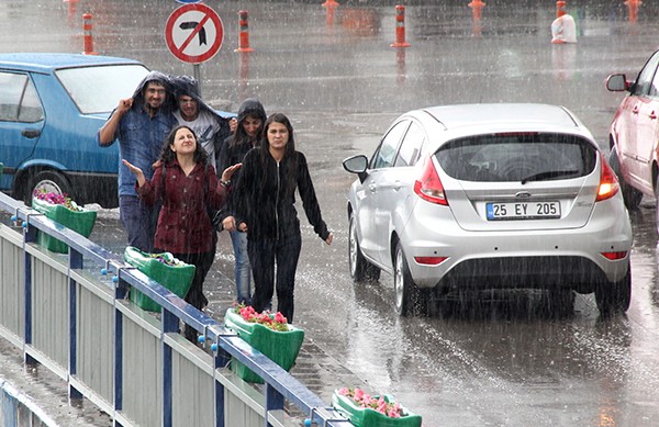 Erzurum’da yağmur yağışı vatandaşları hazırlıksız yakaladı.