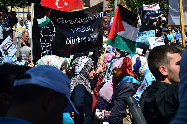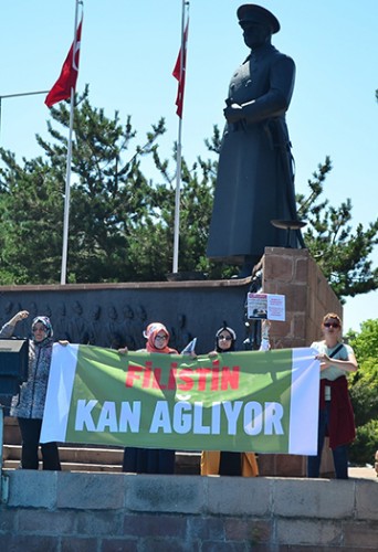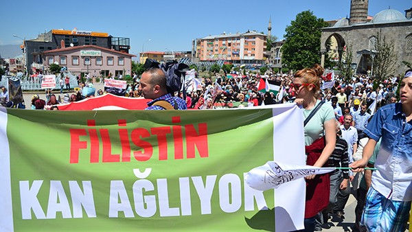 Erzurum’da cuma namazı sonrası Lalapaşa Camii önünde Sivil Toplum Platformu tarafından İsrail’in Gazze’ye yönelik yaptığı saldırılar protesto edildi.