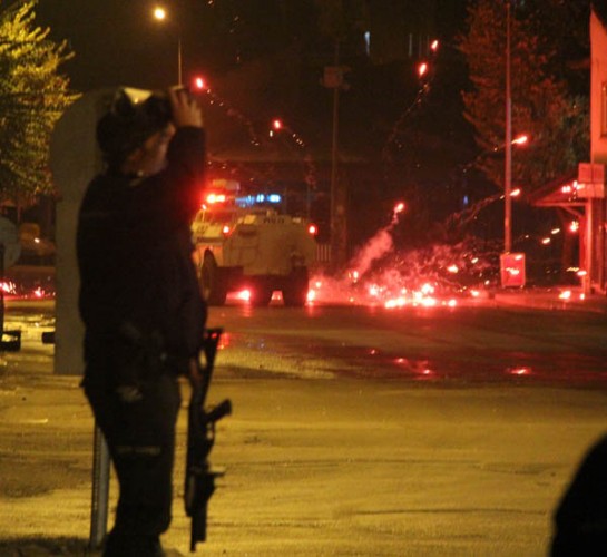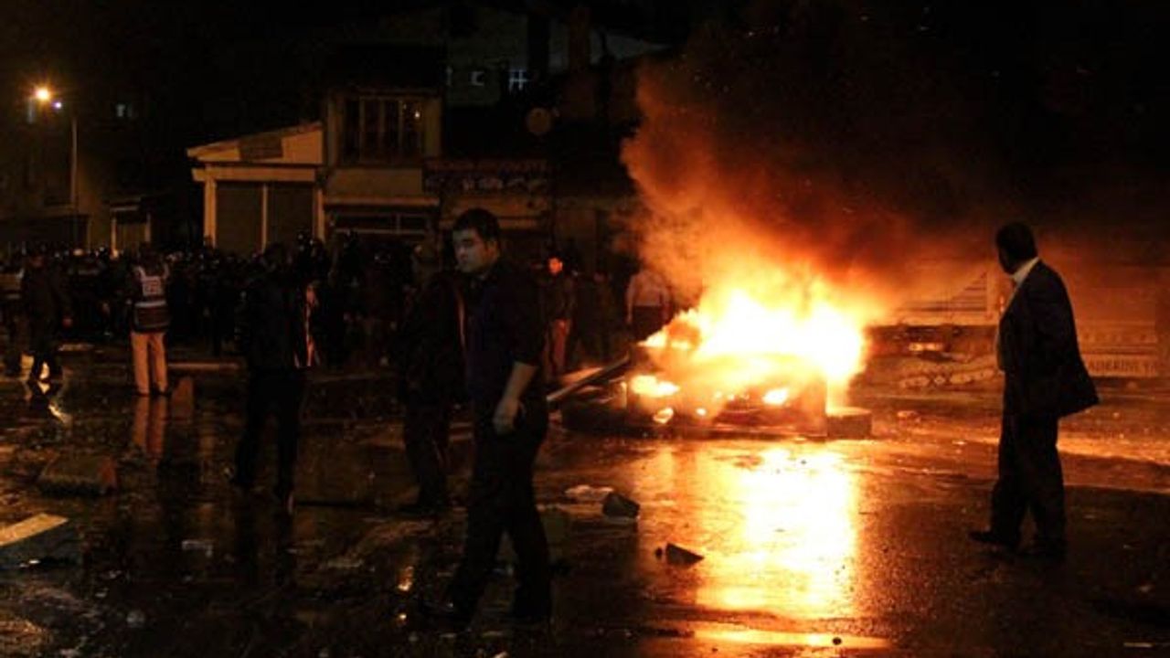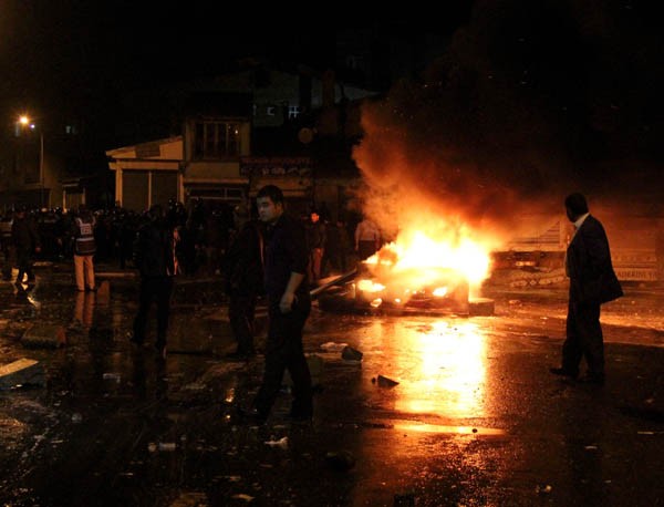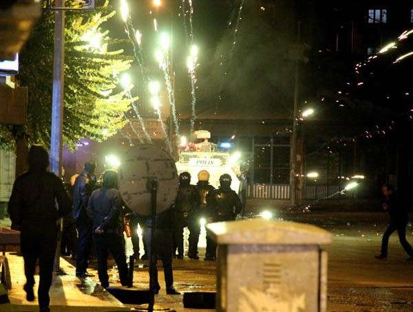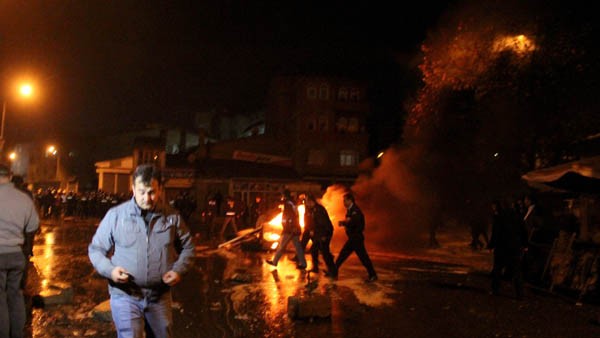 Erzurum’da IŞİD’in saldırılarını bahane eden terör örgütü yandaşları, işyerlerini ateşe vererek polisle çatıştı.