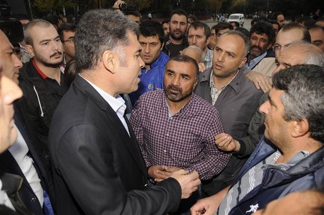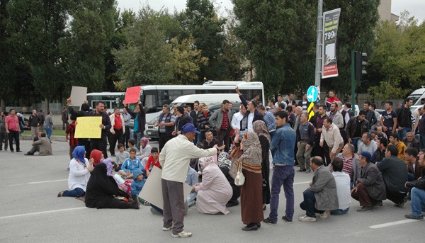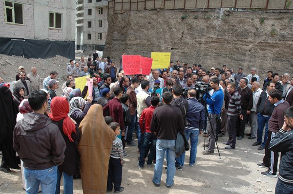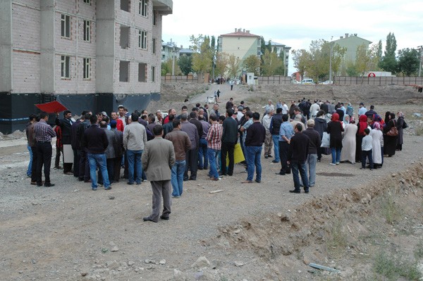 Erzurum'da ruhsat ve projesi olmadığı gerekçesiyle Büyükşehir Belediyesi tarafından inşaatı durdurulan 'New City' isimli konut projesinden daire alanlar, eylem yaptı.