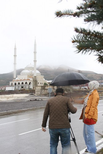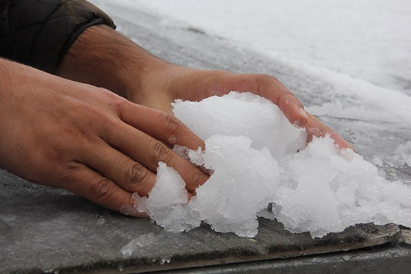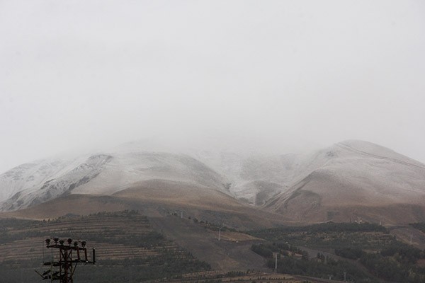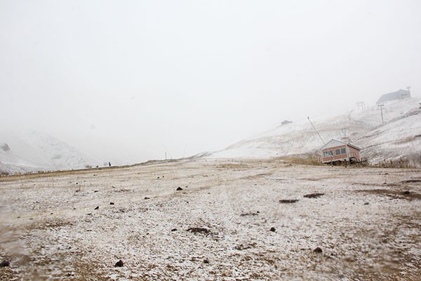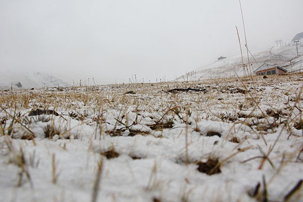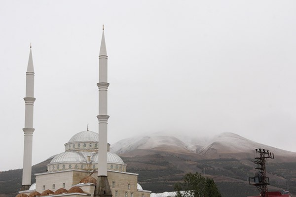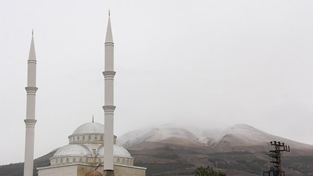 Erzurum'da aralıklarla devam eden sağanağın ardından Palandöken Dağı'nın yüksek kesimlerine kar düştü.