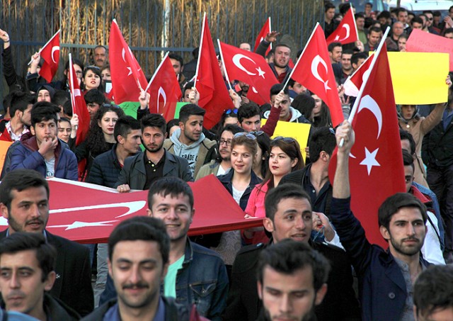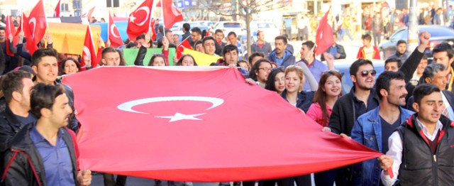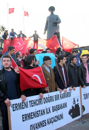 Erzurum’da Atatürk Üniversitesi öğrencileri, yürüyüş düzenleyerek “sözde Ermeni soykırımı” iddialarını protesto etti.