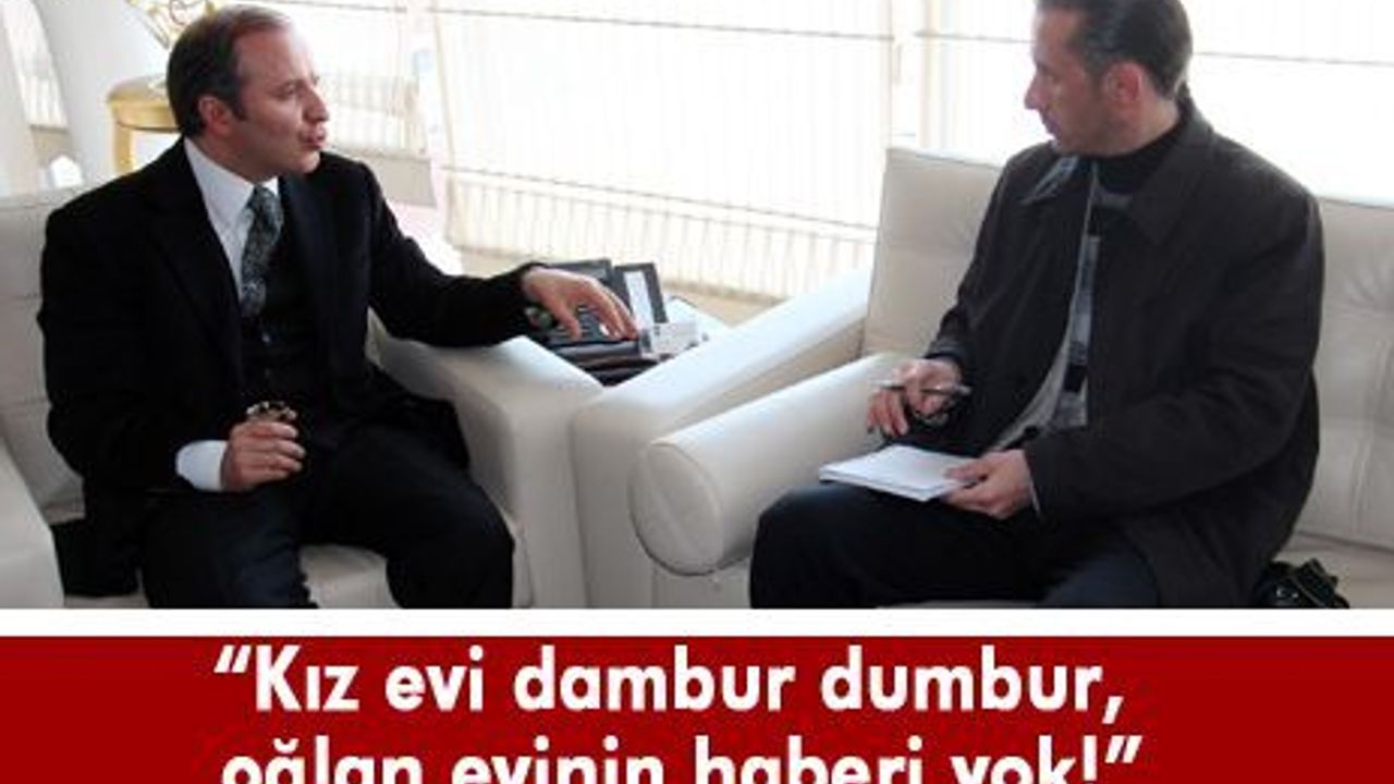 “Tekrar tekrar söylüyorum. Şahıslarla ilgili konuşmuyorum. Kimse bize burada bir şey yapacağız diye gelmedi. Haliyle bizimde bir şeyden haberimiz yok. Anadolu tabiriyle Kız evi dambur dumbur, oğlan evinin haberi yok. Biz burada Büyükşehir gücüyle bir iş yapacağız. Onların bir yapacağı yer de biz on yaparız.”
