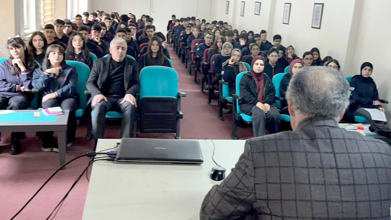 Atatürk Üniversitesi Kazım Karabekir Eğitim Fakültesi Felsefe Grubu Öğretmenliği Öğretim Üyesi Prof. Dr. Zübeyir Saltuklu, Yakutiye- Erzurum Anadolu Lisesi öğrenicilerinin kurduğu Değerler Eğitimi Kulüp üyesi Yaren Memioğlu ve Sıla Su Atmaca’nın nazik davetini kabul edip Okul konferans salonunda 12.02.2026 tarihinde “Vicdan ve Değeri” üzerine söyleşi yaptı.