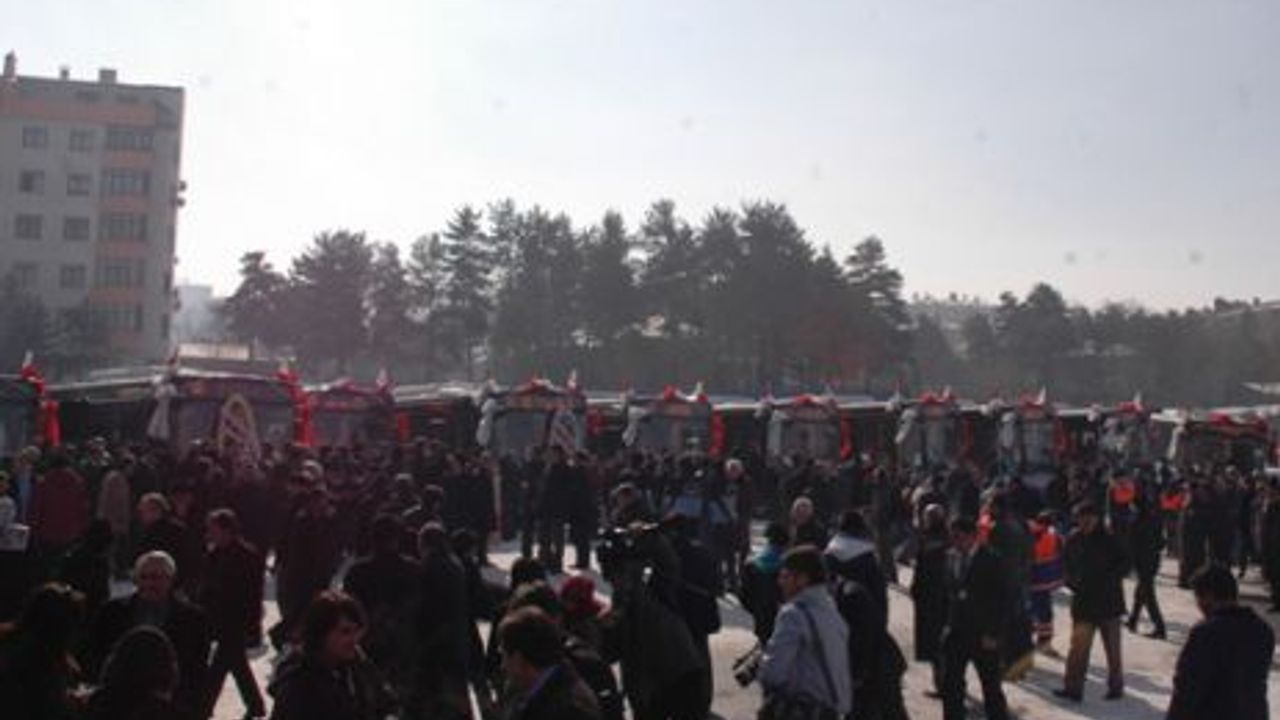 Havuzbaşı Kent Meydanı'nda düzenlenen törene Vali Yardımcısı Mehmet Gök, Erzurum Büyükşehir Belediye Başkanı Ahmet Küçükler ve çok sayıda vatandaş katıldı. Folklor ekibinin gösterisinin ardından Büyükşehir Belediye Başkanı Ahmet Küçükler, görev başına geldiği 2004 yılında kurumun ulaşım hizmeti veren bir tek otobüsünün bulunmadığını belirterek, "Bütün otobüsler bizden önceki dönemde hatlarıyla birlikte satılmış, özelleştirilmişti. Biz başından beri ulaşım hizmetlerinde aktif bir biçimde rol almamız gerektiğini düşünüyorduk. Dolayısıyla yeni baştan filo kurmaya başladık. Erzurum'u körüklü otobüslerle tanıştırmak suretiyle başlattığımız bu seferberlik, hamdolsun bugün memnuniyet verici bir boyuta ulaştı. Daha önceki yıllarda satın aldığımız otobüslerimize ek olarak geçtiğimiz yıl 13 yeni otobüs daha almıştık. Şimdi de filomuza 15 yeni otobüs daha kazandırdık. Böylece ulaşım filomuzda faal olarak ulaşım hizmeti veren otobüs sayımız toplamda 40'a ulaştı" diye konuştu.