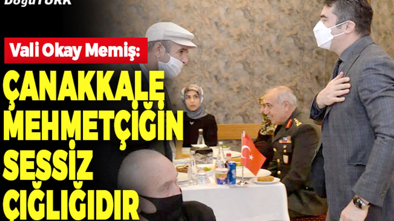 Çanakkale Zaferi’nin kanla yazılmış bir destan olduğunu söyleyen Vali Memiş, "Çanakkale, milletinin geleceği için, kendi geleceğinden vazgeçmiş, kendi kaderine boyun eğmiş ama vatanının kaderine boyun eğmemiş Mehmetçiğin sessiz çığlığıdır. Vatan sevgisini kendinden, anne babasından, sevdiğinden üstün tutmuş, yüz binlerin canları pahasına elde ettiği zaferdir Çanakkale." şeklinde konuştu.